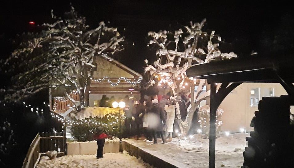 Unser 3. Winterzauber in unserem mit vielen Lichtakzenten dekoriertem Biergarten in toller Atmosphäre mit Tonnenfeuer
